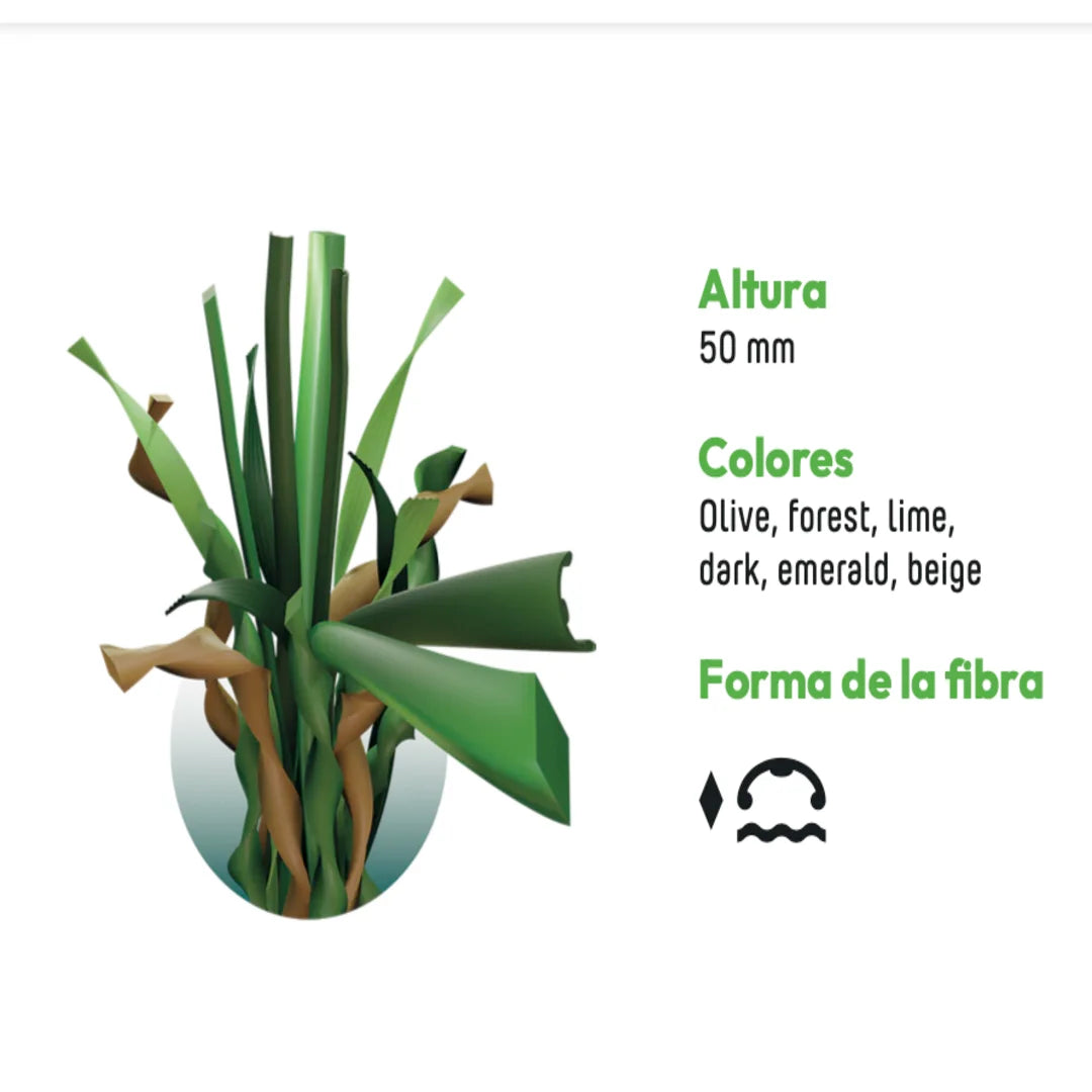 Un césped con una estética y textura inigualables, denso y voluminoso gracias a sus tres niveles de fibras y una cantidad de hilo superior a la media. Su mullidez y tacto sedoso ofrecen una sensación excepcional, tan natural que parece danzar con la brisa. Además, incorpora la nanotecnología Atmös, promoviendo sostenibilidad y respeto por el medio ambiente.