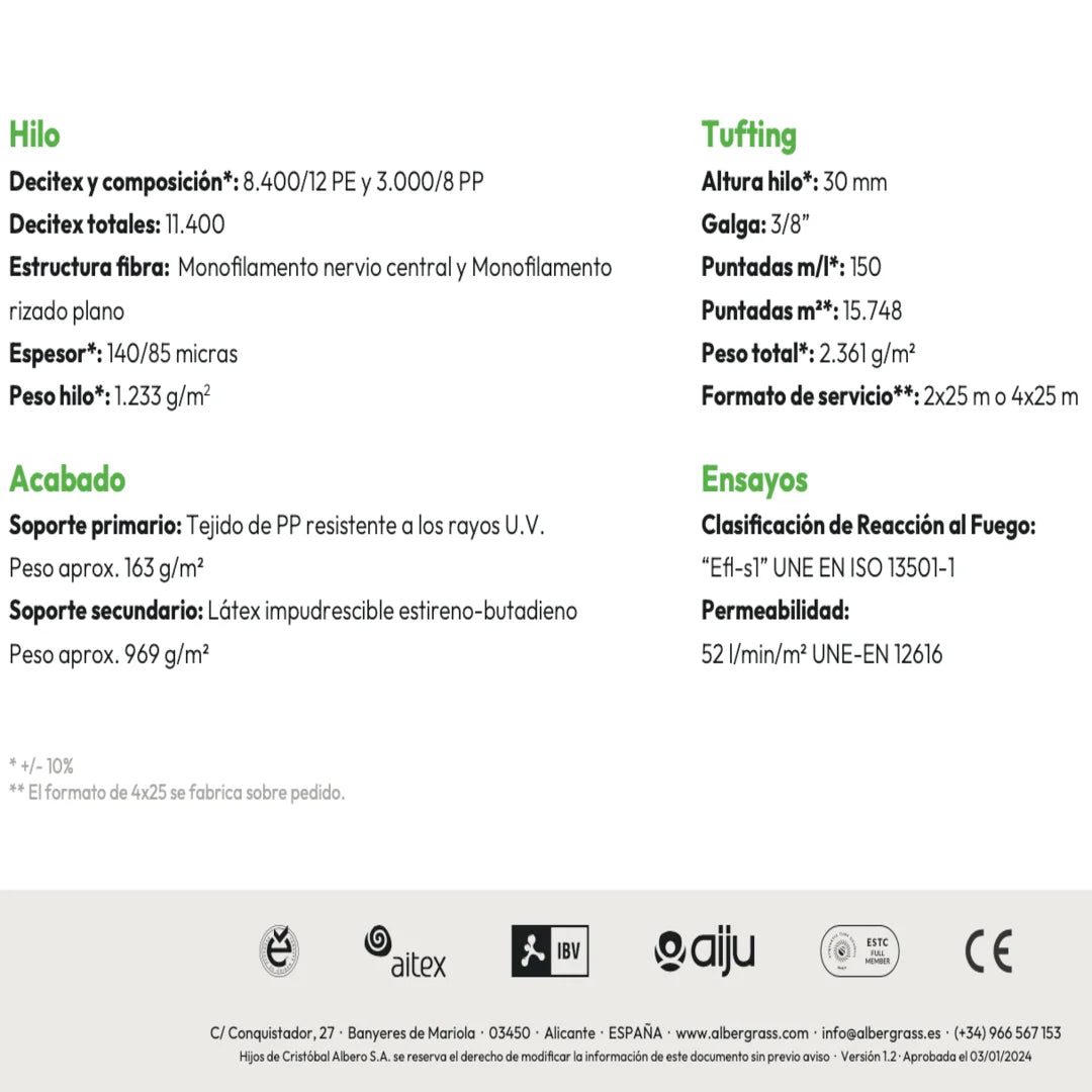 Ofrece una sensación de densidad y volumen, diseñado para aportar confort y suavidad a cualquier espacio exterior gracias a su versatilidad. Garantiza una superficie agradable y duradera, con una estética impecable a lo largo del tiempo.