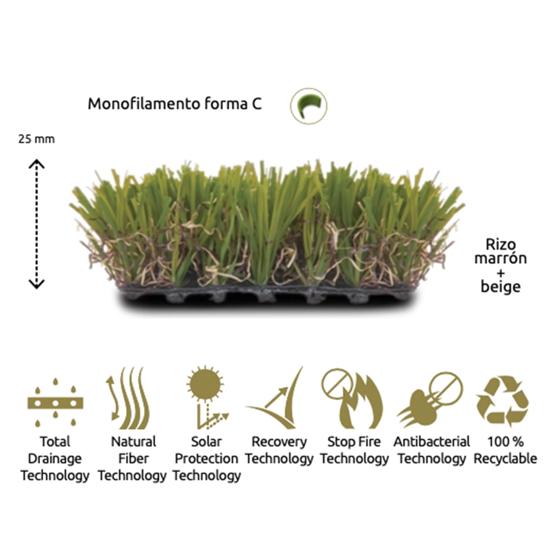 Su equilibrada combinación de tonos verdes, marrones y beige aporta un realismo excepcional, logrando un aspecto natural y sofisticado.