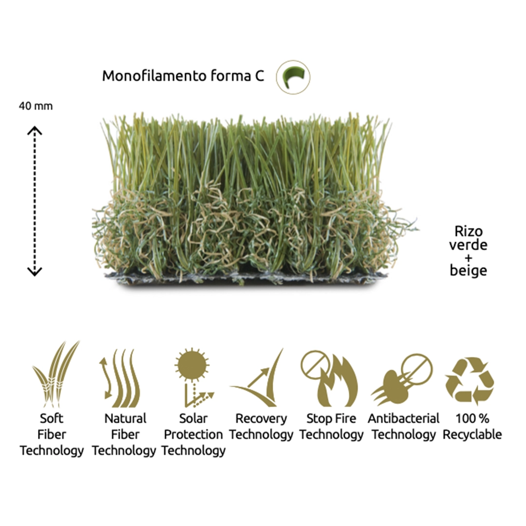 REALITY combina tecnología Natural Fiber y una densidad óptima para lograr un césped de aspecto natural, suave y con excelente recuperación.
