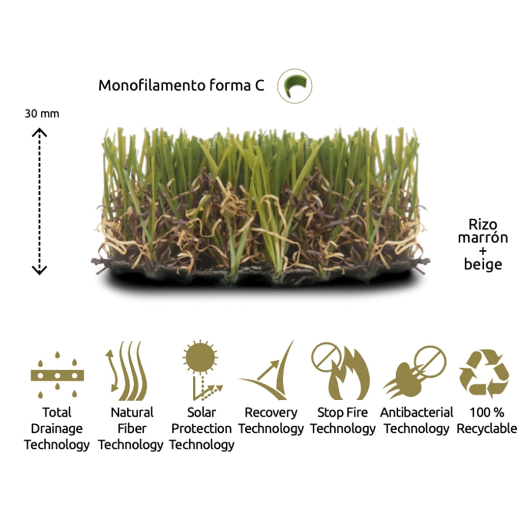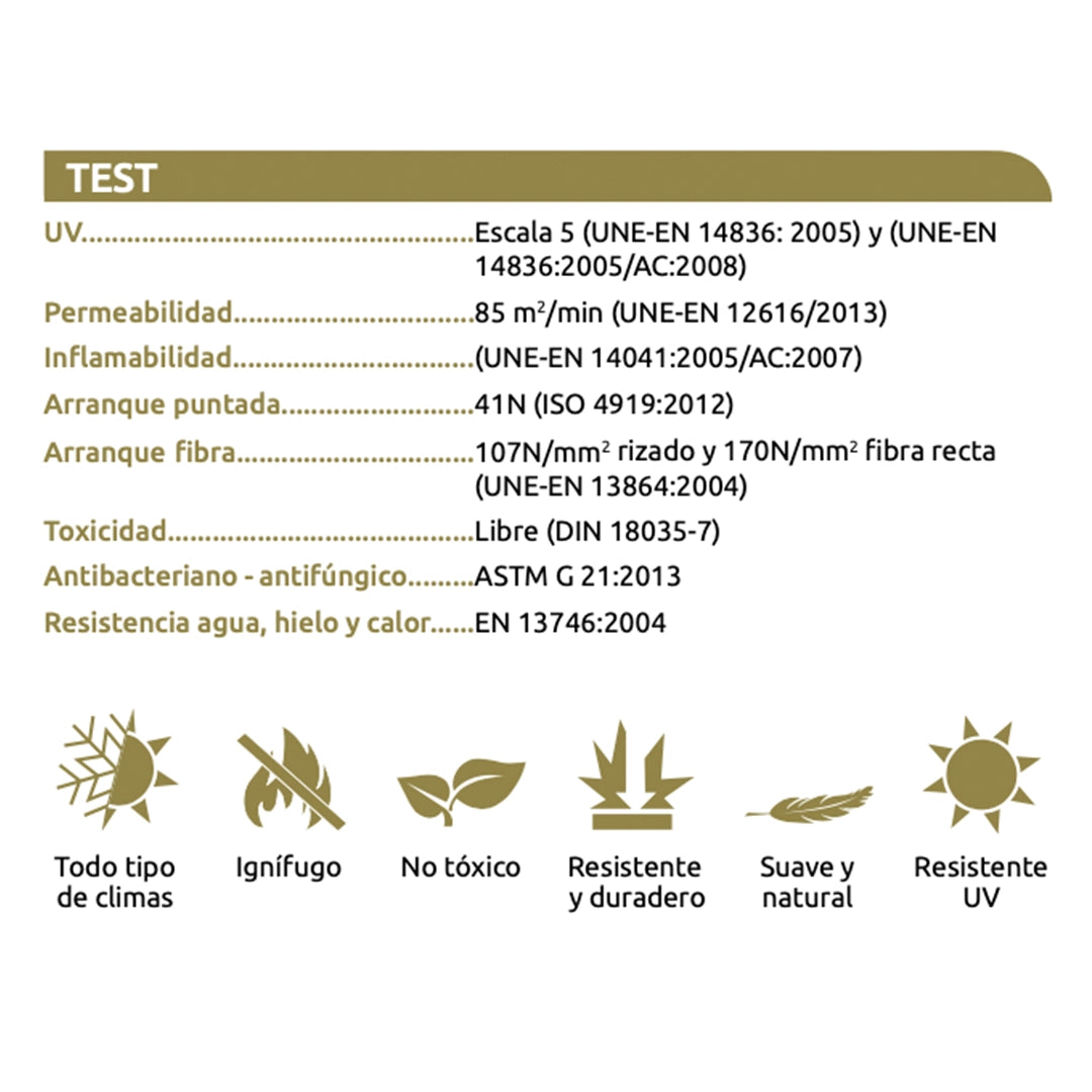 Sus fibras en forma de C garantizan una rápida recuperación tras la pisada, aportando densidad, durabilidad y un aspecto siempre impecable.